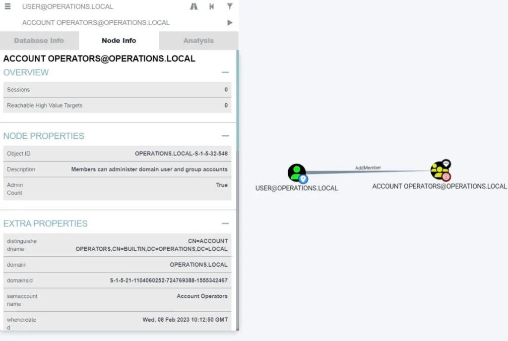 As a thought experiment, imagine that a pentester is conducting an infrastructure assessment – again in a Windows Active Directory (AD) environment – and either spots that they have control over a user who can modify the membership of a high value built-in group, such as Account Operators, or the AI they feed their tool output into recognizes this state.