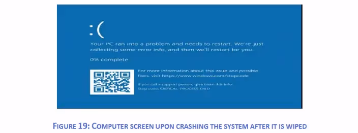 It would also appear that spear-phishing was not used in this attack, and ‘remote execution vulnerabilities in a VPN appliance, disclosed in July 2019’ were exploited to gain entry to the network instead. Successful attacks resulted in wiped systems showing a Blue Screen of Death (BSoD) message.