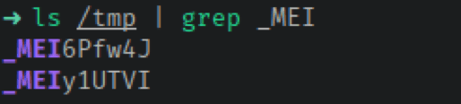PyInstaller has different modes; one-file mode will compile all of the required files into a single executable, while one-folder mode bundles all the required files into a directory. Looking at the installation directory, there is nothing to indicate a one-folder mode PyInstaller compilation. PyInstaller executables compiled with one-file mode, however, unpack files into the temporary directory when the application is executed. The files are placed into a directory whose name is a random value prepended with ‘_MEI’. Two of these directories are found in /tmp on Linux when both the client and the service are running.