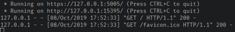 Navigating to either server returns the text ‘SuccessAviatrix’; however, examining the terminal that was used to start the client revealed a request log. The particular format of this output, combined with the format of the last two lines of the client’s startup output, indicated that these services are based on Flask. This means that at least some of the application is written in Python.
