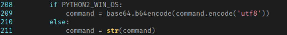 Before the method returns, the value of the command variable is updated, again determined by the operating system. On Linux and macOS the value is cast as a string; on Windows it is Base64 encoded.