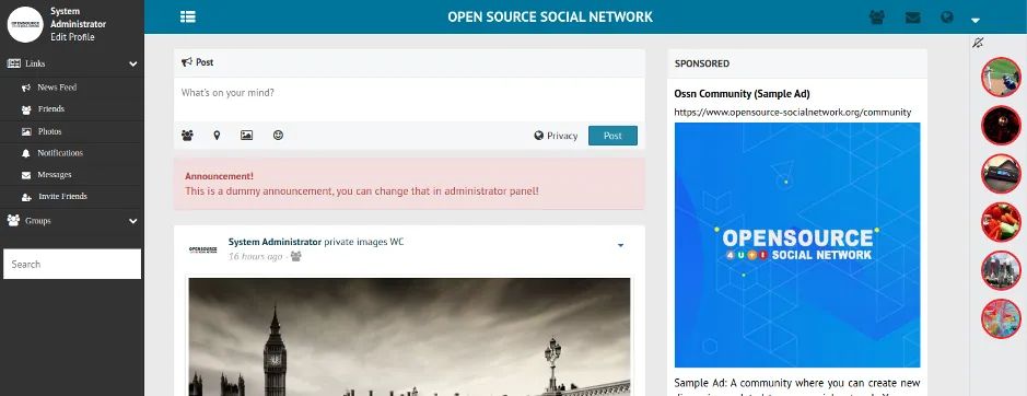 The Open Source Social Network (OSSN) is pretty self-explanatory: it’s an open source social media platform that a user hosts themself. Reasonably easy to download and get running, it’s written in PHP, uses a MySQL backend, and has just shy of half a million downloads listed on its main site.