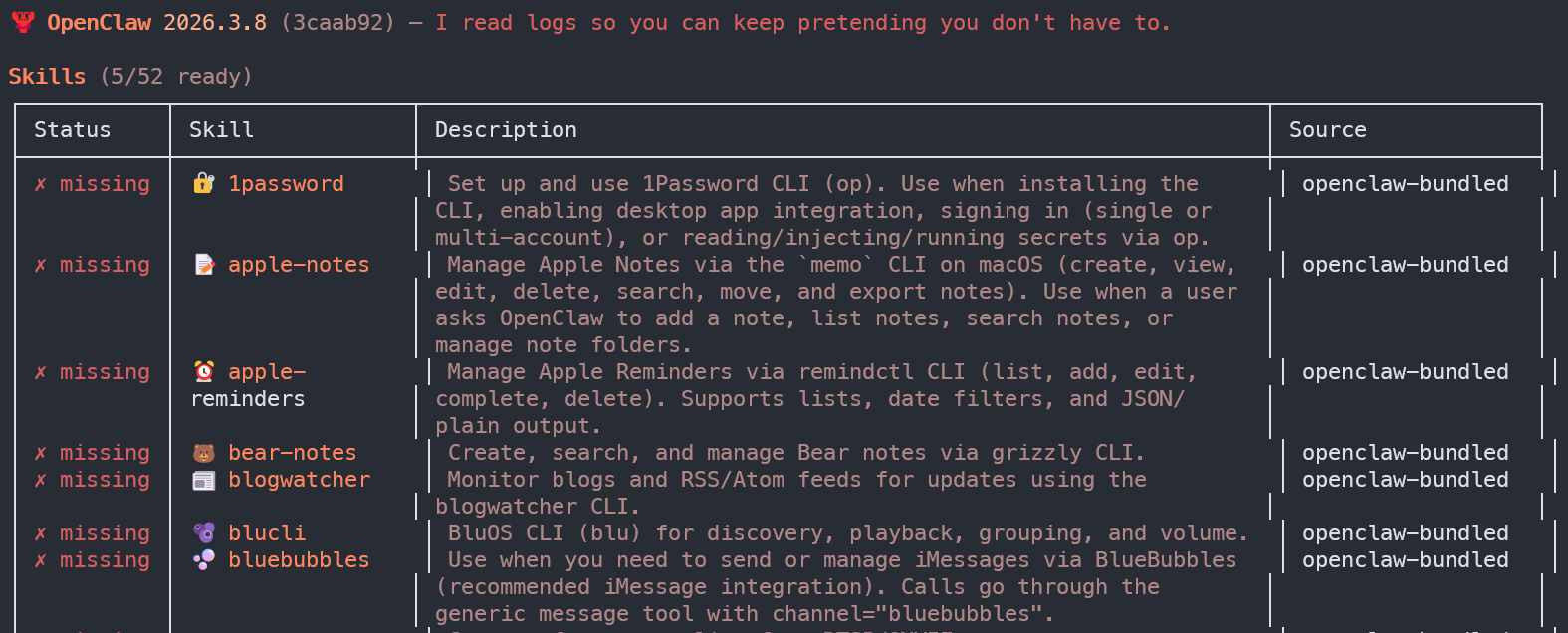From within OpenClaw, you can list all installed Skills. Before installing any Skill, read the instructions and any included files, not just the “description.” Periodically review the installed Skills for any that look out of place.
