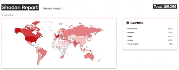 Shodan shows there are approximately 185,000 active CWP servers on the internet. Each one likely runs between 10 and 100 websites, meaning any vulnerability on the underlying server software could impact millions of individual websites.
