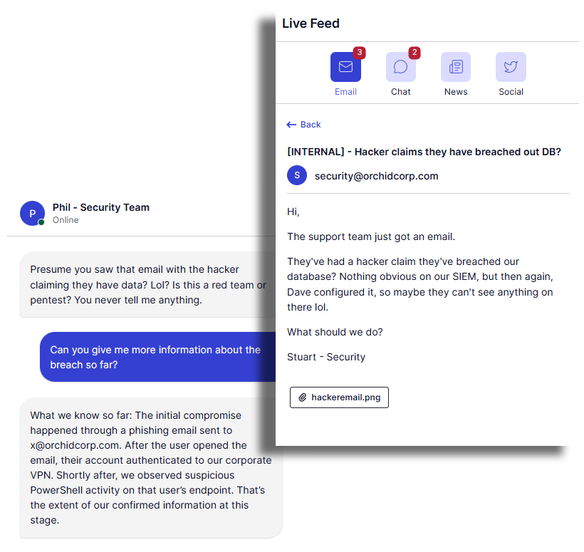 While our initial release enables instant, custom scenario generation tailored to your organization, our 2.0 release this February will equip managers to inject realistic signals and noise into the simulation (across emails, news coverage, and internal chats), mirroring the chaos and information overload of a real breach. This ensures your team remains practiced against the newest CVEs without the development overhead and time lag traditionally involved.